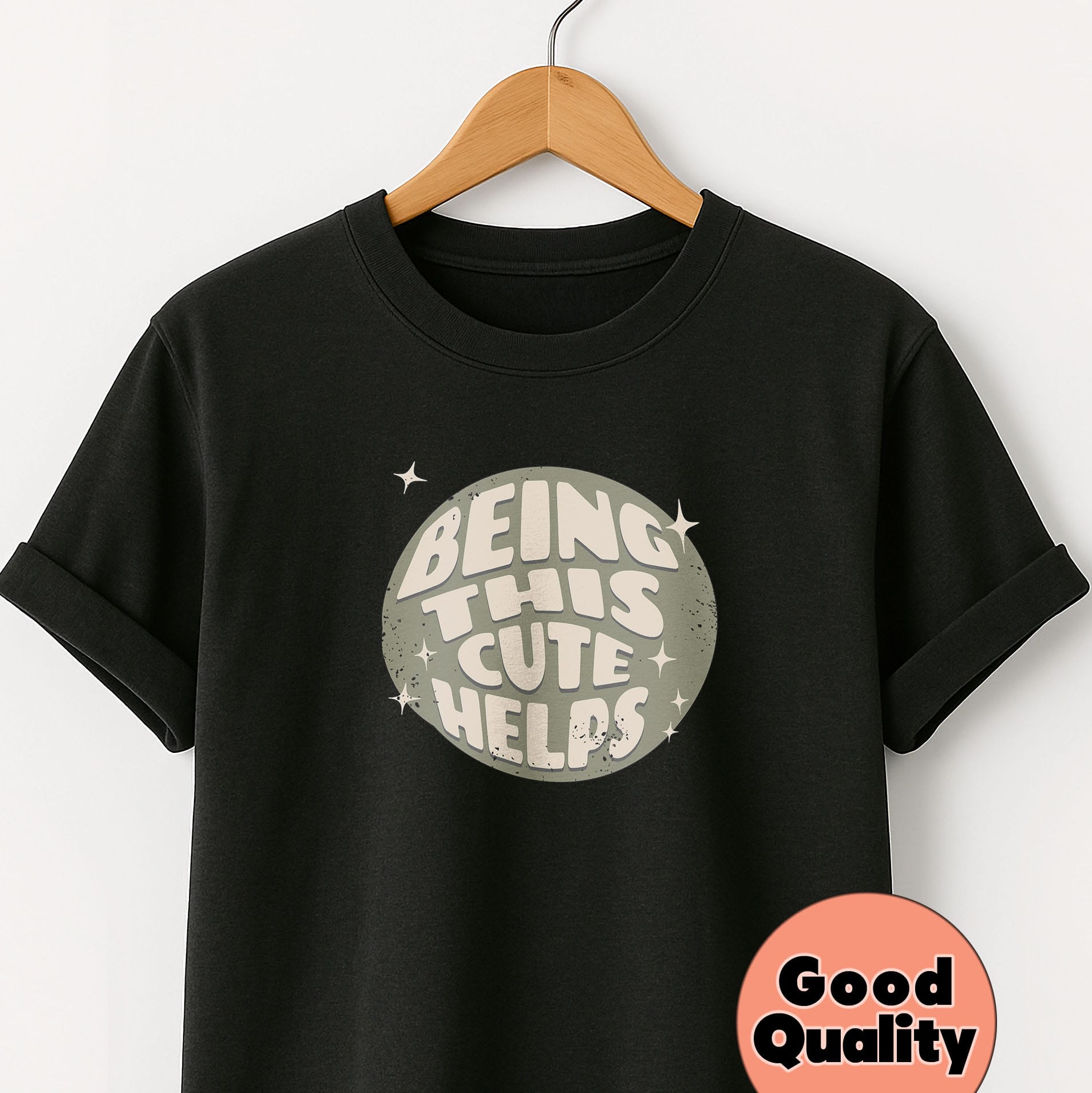 “Being This Cute Helps” is for the ones who get by on personality, luck, and a dangerously effective smile. It’s not arrogance, it’s resourcefulness — when in doubt, distract them with dimples.