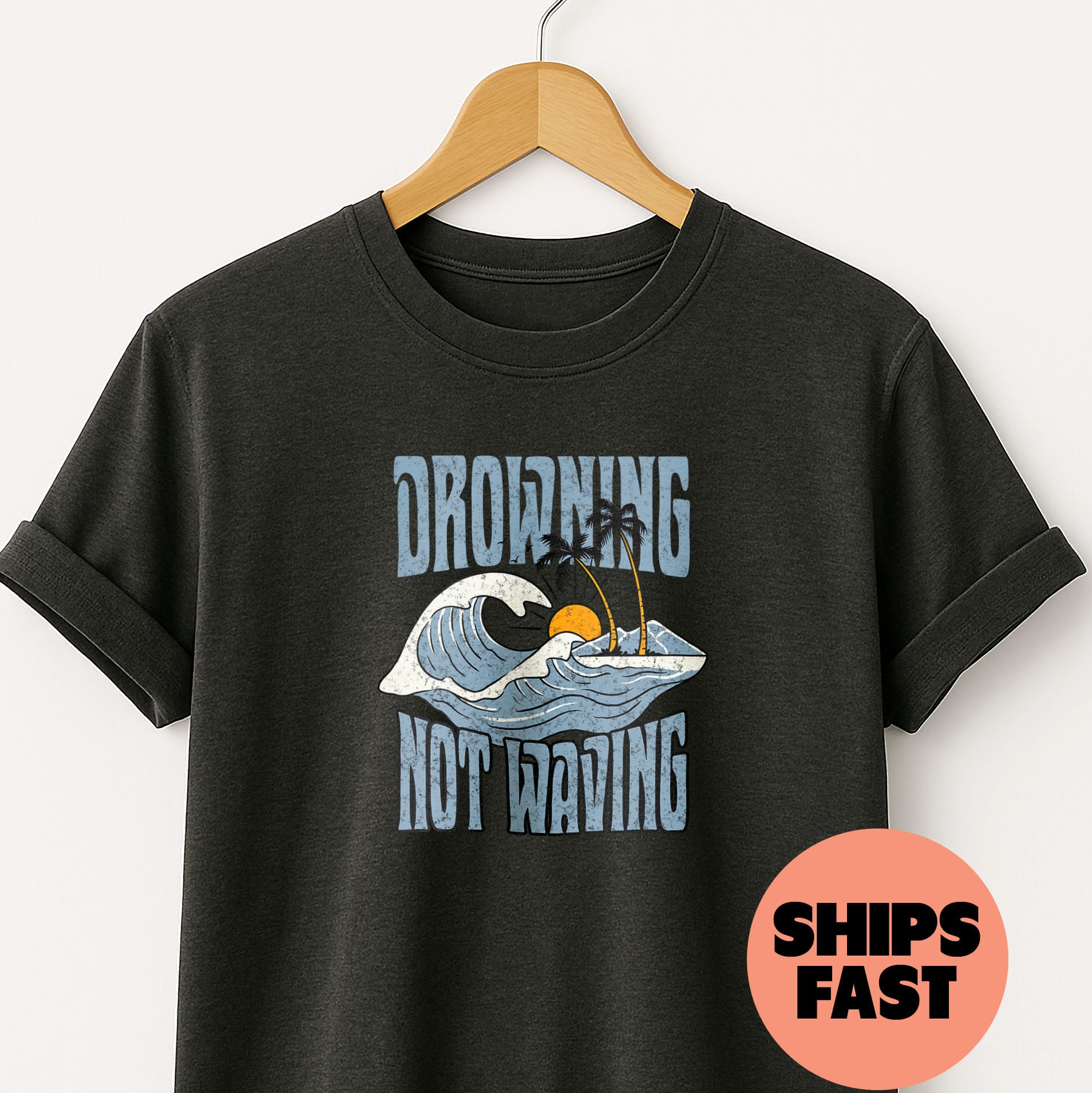“Drowning Not Waving” is for the ones who smile through the chaos, make jokes mid-meltdown, and turn quiet struggle into something strangely beautiful. It’s not about giving up — it’s about admitting you’re treading water and still finding humor in it.